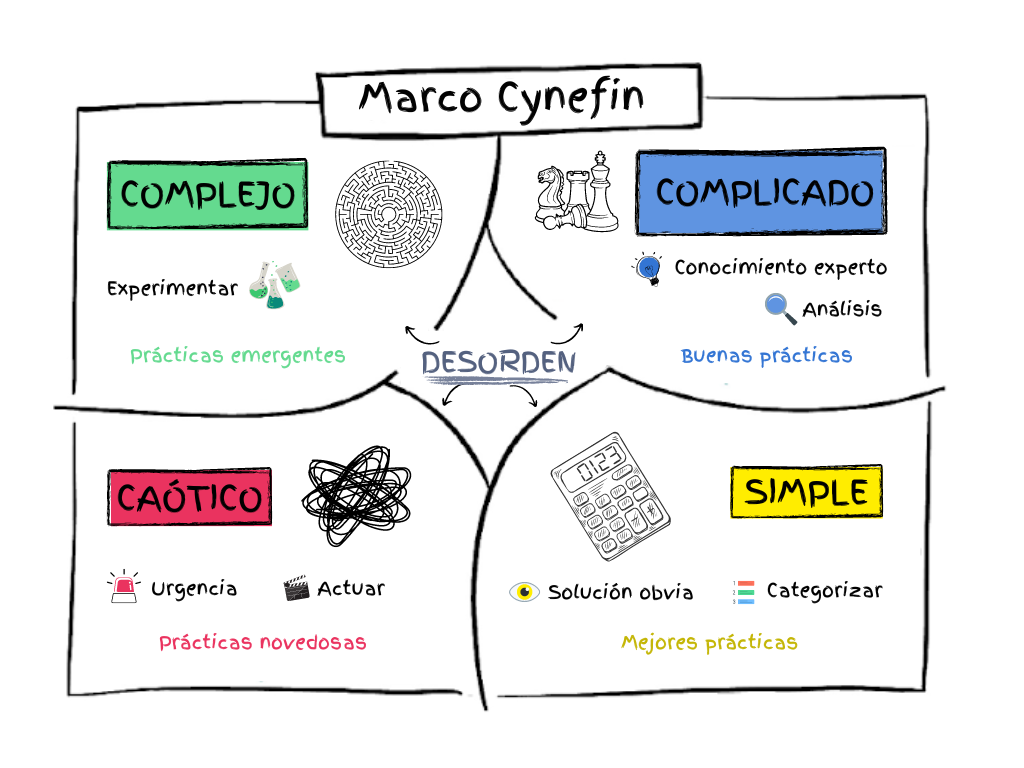 Para entender Lean OKR, primero debemos mirar el entorno. Según el marco Cynefin, la forma en que tomamos decisiones depende del contexto: